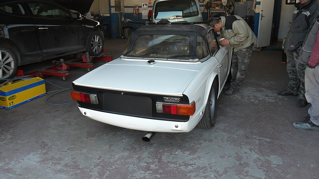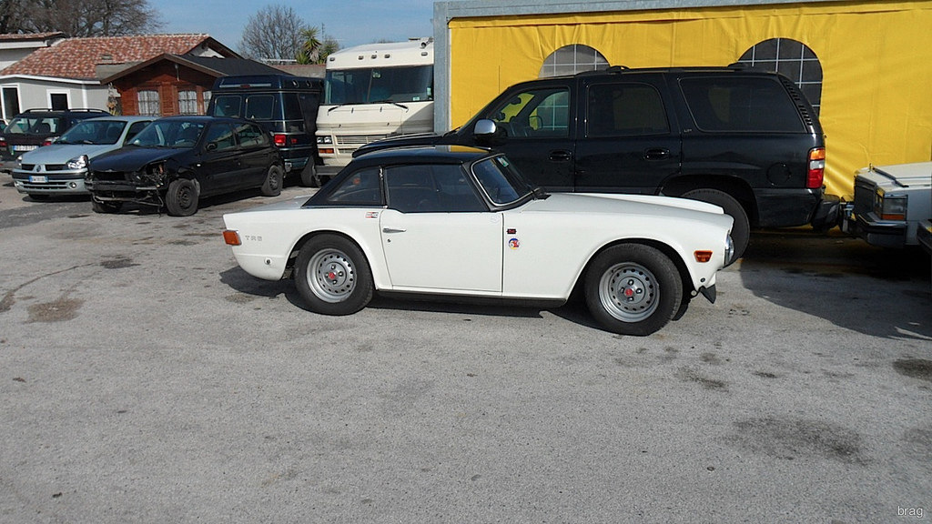 La mia TR6 PI è una CR (quindi un modello ad iniezione depotenziata a 125 CV) prodotta alla fine del 1974 ed immatricolata nel 1975; uniprò, l'ho acquistata ad inizio del 2011: l'auto era marciante, ma radiata d'ufficio per il mancato pagamento della tassa di proprietà.